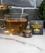 - Using provided spoon, measure a pea-sized amount of Shilajit Resin Ashwagold